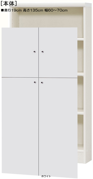 全面扉付き薄型中二階ラック 高さ135cm幅60~70cm奥行19cm 標準棚板1.7cm厚 オプション一覧