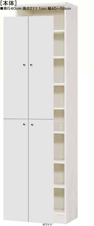 全面扉付きA3書斎ラック 高さ211.1cm幅45~59cm奥行40cm 標準棚板1.7cm厚 オプション一覧