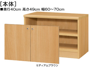 全面扉付きA3ローボード頑丈ラック 奥行40cm×高さ49cm×幅60~70cm