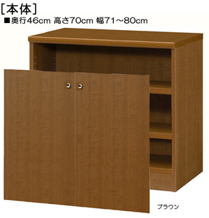 全面扉付き奥深デスク横頑丈ラック 高さ70cm幅71~80cm奥行46cm厚棚板