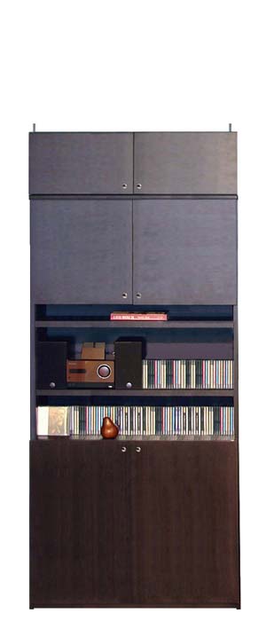 用途多様な飾り棚 扉のない中央部分には写真や絵画など趣味のものを飾ったり、プリンタなど実用品を置いたり使い道色々。 |