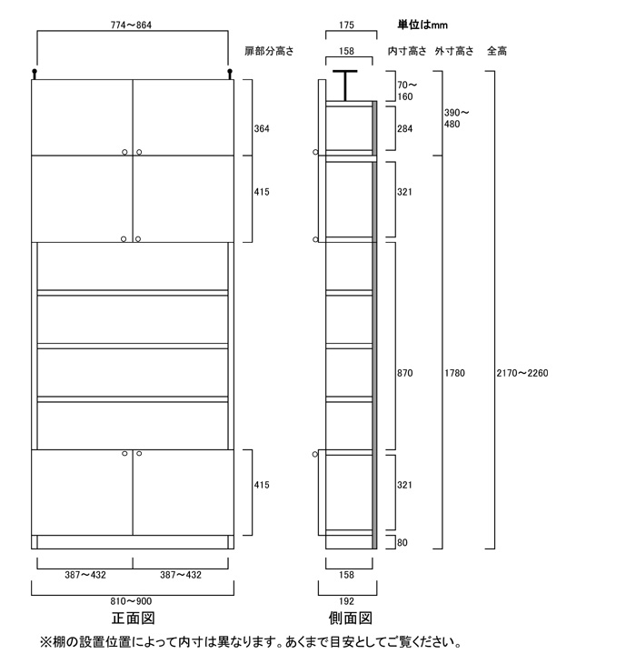 • ■外寸奥行19cm×高さ217~226cm×幅81~90cm(幅は1cm単位でオーダーできます)