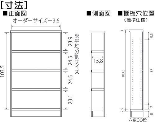 幅木よけ加工、棚移動1.5cmピッチ、(配線用)裏板穴加工、タフ棚板穴加工、等の加工オプション。