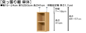 上置き棚A4 高さ48~57cm幅15~24cm奥行29.5cm(本体奥行31cm用) 標準棚板1.7cm厚 オプション一覧