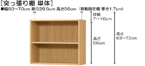 上置き棚A4 高さ63~72cm幅60~70cm奥行29.5cm(本体奥行31cm用) 標準棚板1.7cm厚 オプション一覧