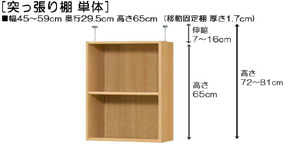 上置き棚A4 高さ72~81cm幅45~59cm奥行29.5cm(本体奥行31cm用) 標準棚板1.7cm厚 オプション一覧