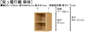 上置き棚奥深 高さ48~57cm幅25~29cm奥行44.5cm(本体奥行46cm用) 標準棚板1.7cm厚 オプション一覧