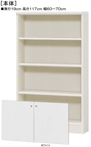 下扉付き薄型ロフトラック 高さ117cm幅60~70cm奥行19cm 標準棚板1.7cm厚 オプション一覧