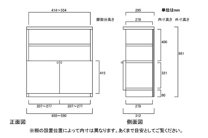 • ■外寸奥行31cm×高さ88.1cm×幅45~59cm(幅は1cm単位でオーダーできます)