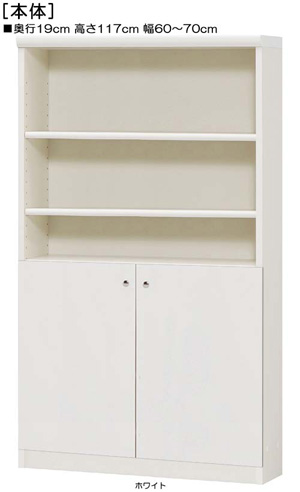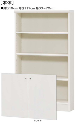下扉付き薄型ロフトラック 高さ117cm幅60~70cm奥行19cm 標準棚板1.7cm厚 オプション一覧