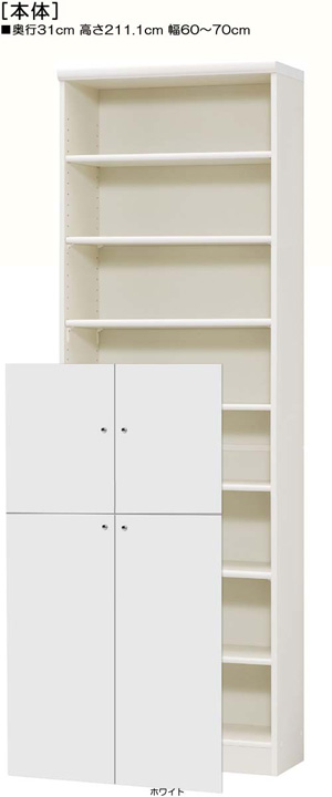 下扉付きA4書斎ラック 高さ211.1cm幅60~70cm奥行31cm 標準棚板1.7cm厚 オプション一覧