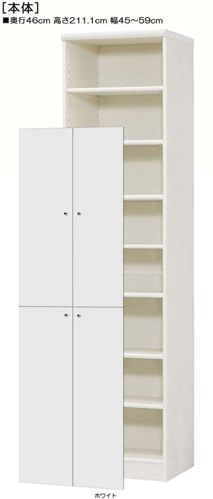 下扉付き奥深書斎ラック 高さ211.1cm幅45~59cm奥行46cm 標準棚板1.7cm厚 オプション一覧