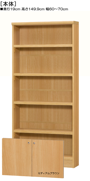 下扉付き薄型子供部屋頑丈ラック 高さ149.9cm幅60~70cm奥行19cm厚棚板 厚棚板2.5cm厚 オプション一覧