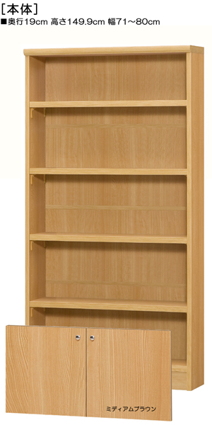 下扉付き薄型子供部屋頑丈ラック 高さ149.9cm幅71~80cm奥行19cm厚棚板 厚棚板2.5cm厚 オプション一覧