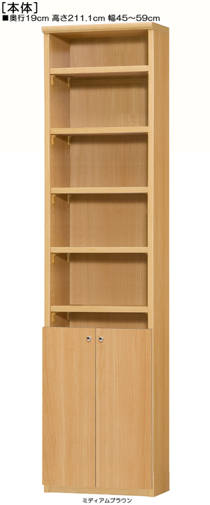 下扉付き薄型書斎頑丈ラック 高さ211.1cm幅45~59cm奥行19cm厚棚板 厚棚板2.5cm厚 オプション一覧