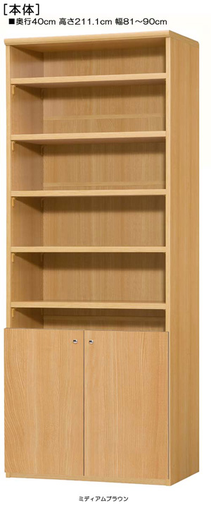 下扉付きA3書斎頑丈ラック 高さ211.1cm幅81~90cm奥行40cm厚棚板 厚棚板2.5cm厚 オプション一覧