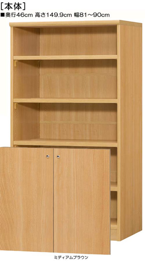 下扉付き奥深子供部屋頑丈ラック 高さ149.9cm幅81~90cm奥行46cm厚棚板 厚棚板2.5cm厚 オプション一覧