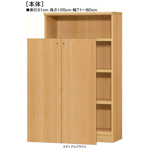 高さ135cm幅71~80cm奥行31cm厚棚板(棚板厚み2.5cm)    セット品 タフタイプ 本体+本体扉