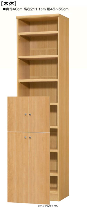 高さ211.1cm幅45~59cm奥行40cm厚棚板(棚板厚み2.5cm)    セット品 タフタイプ 本体+本体扉