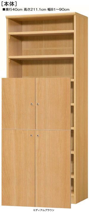 下扉付きA3書斎頑丈ラック 高さ211.1cm幅81~90cm奥行40cm厚棚板 厚棚板2.5cm厚 オプション一覧