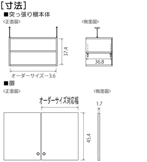 • 扉付きA3天井突張り上置き棚 高さ48~57cm幅60~70cm奥行38.5cm(本体奥行40cm用) 標準棚板1.7cm厚 棚板耐荷重:4Kg