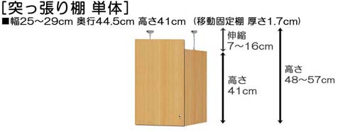 上置き棚奥深 高さ48~57cm幅25~29cm奥行44.5cm(本体奥行46cm用) 標準棚板1.7cm厚 オプション一覧