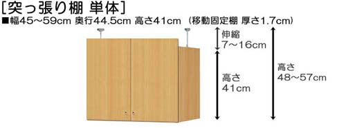 上置き棚奥深 高さ48~57cm幅45~59cm奥行44.5cm(本体奥行46cm用) 標準棚板1.7cm厚 オプション一覧