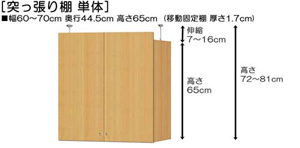上置き棚奥深 高さ72~81cm幅60~70cm奥行44.5cm(本体奥行46cm用) 標準棚板1.7cm厚 オプション一覧