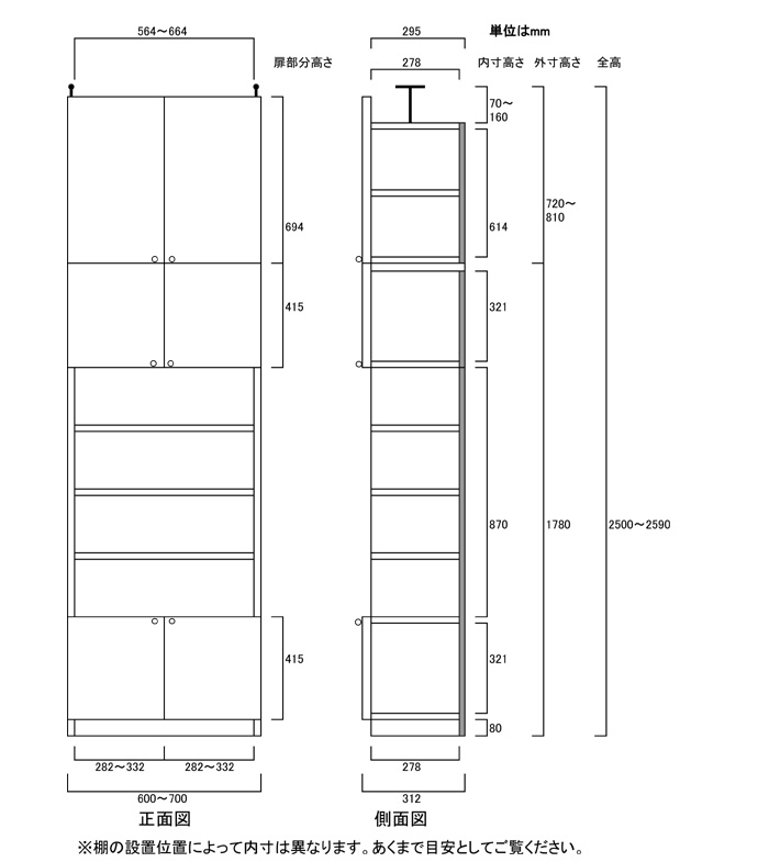- ■外寸奥行31cm×高さ250~259cm×幅60~70cm(幅は1cm単位でオーダーできます)