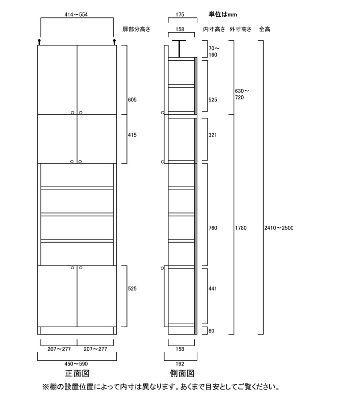• ■外寸奥行19cm×高さ241~250cm×幅45~59cm(幅は1cm単位でオーダーできます)