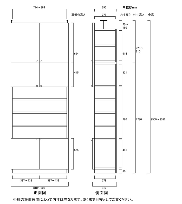 - ■外寸奥行31cm×高さ250~259cm×幅81~90cm(幅は1cm単位でオーダーできます)