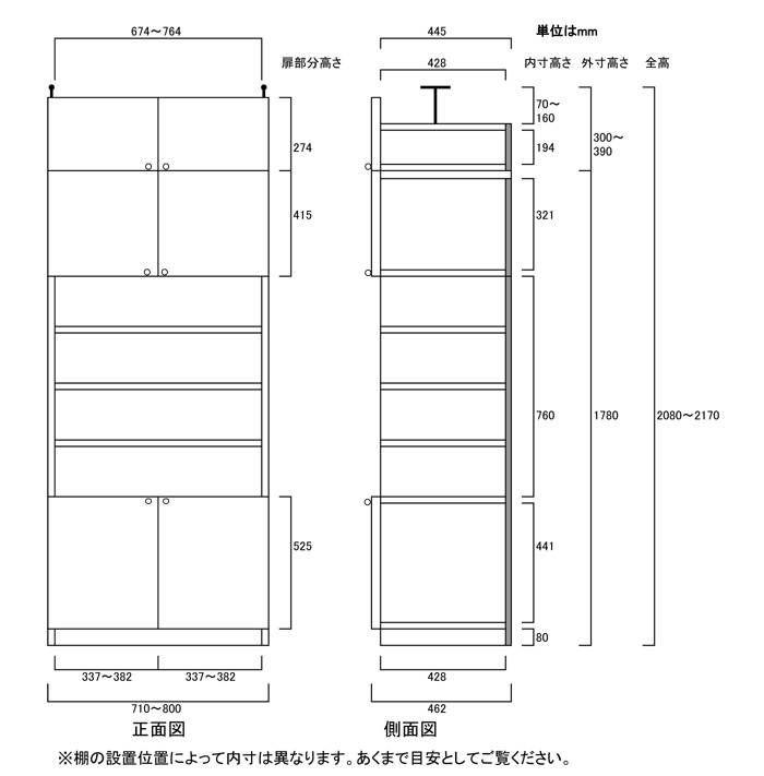 - ■外寸奥行46cm×高さ208~217cm×幅71~80cm(幅は1cm単位でオーダーできます)