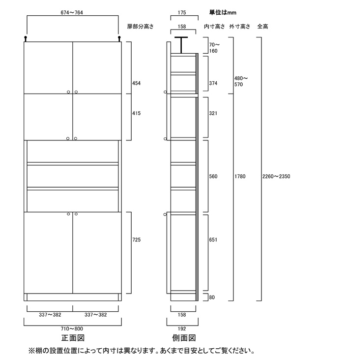 • ■外寸奥行19cm×高さ226~235cm×幅71~80cm(幅は1cm単位でオーダーできます)