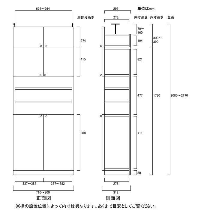 • ■外寸奥行31cm×高さ208~217cm×幅71~80cm(幅は1cm単位でオーダーできます)