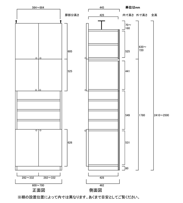 • ■外寸奥行46cm×高さ241~250cm×幅60~70cm(幅は1cm単位でオーダーできます)
