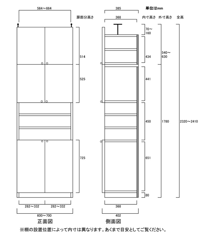- ■外寸奥行40cm×高さ232~241cm×幅60~70cm(幅は1cm単位でオーダーできます)