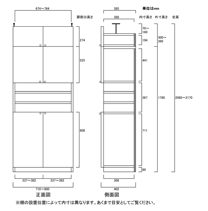 - ■外寸奥行40cm×高さ208~217cm×幅71~80cm(幅は1cm単位でオーダーできます)