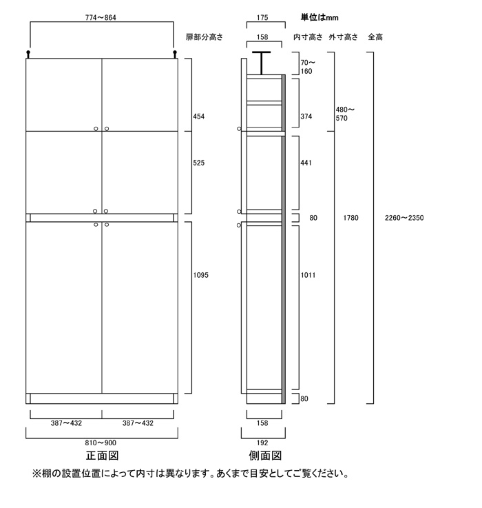 - ■外寸奥行19cm×高さ226~235cm×幅81~90cm(幅は1cm単位でオーダーできます)