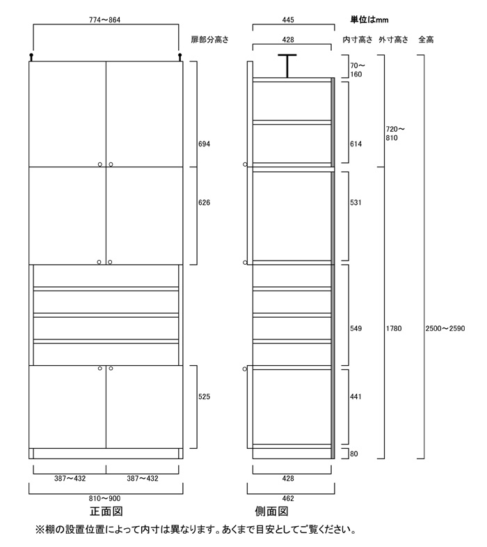 • ■外寸奥行46cm×高さ250~259cm×幅81~90cm(幅は1cm単位でオーダーできます)