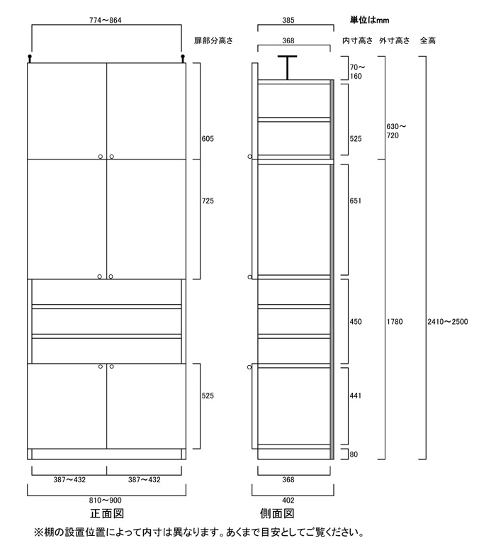 - ■外寸奥行40cm×高さ241~250cm×幅81~90cm(幅は1cm単位でオーダーできます)