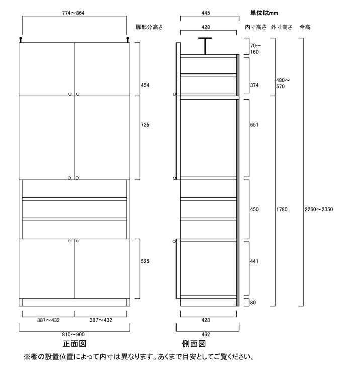 • ■外寸奥行46cm×高さ226~235cm×幅81~90cm(幅は1cm単位でオーダーできます)