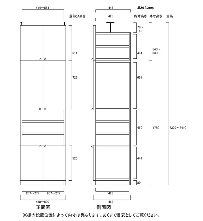 • ■外寸奥行46cm×高さ232~241cm×幅45~59cm(幅は1cm単位でオーダーできます)