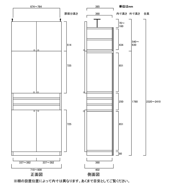- ■外寸奥行40cm×高さ232~241cm×幅71~80cm(幅は1cm単位でオーダーできます)