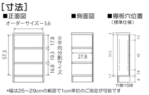 | ■外寸 | 奥行31cm×高さ70cm×幅25〜29cm (幅は1cm単位でオーダーできます) |