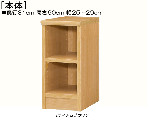 | ■外寸 | 奥行31cm×高さ60cm×幅25〜29cm (幅は1cm単位でオーダーできます) |