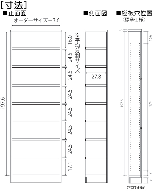 | ノーマル棚(棚板厚み1.7p) | 厚板棚(棚板厚み2.5p) | ||||||||