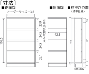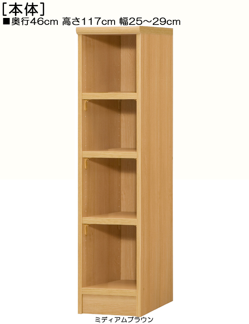 | ■外寸 | 奥行46cm×高さ117cm×幅25〜29cm (幅は1cm単位でオーダーできます) |