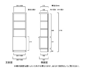 | ■外寸 | 奥行19cm×高さ117cm×幅30〜44cm (幅は1cm単位でオーダーできます) |