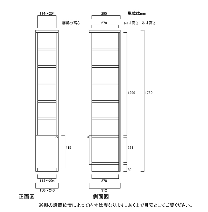 | 扉高109.5cm | 扉高127.3cm | 扉高142.2cm | 扉高170.2cm | ||||||||