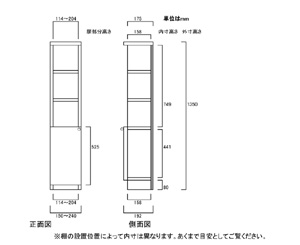 | ■外寸 | 奥行19cm×高さ135cm×幅15〜24cm (幅は1cm単位でオーダーできます) |